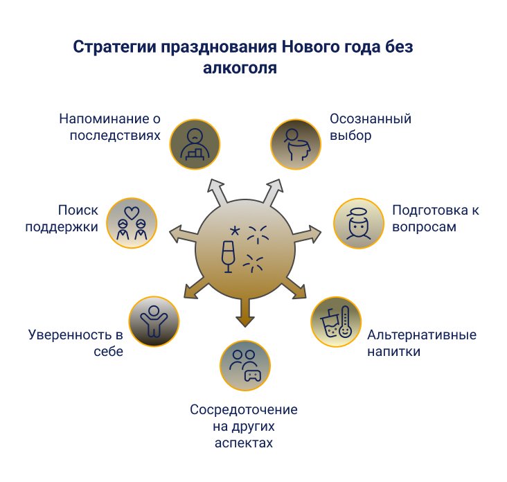 Встреча Нового года — волшебный праздник, после которого мы надеемся на перемены. Но для многих подготовка к празднику сопряжена с тревогой: получится ли на этот раз удержаться? Не сорвусь ли я снова? Что подумают другие, если я не буду пить? Постараемся ответить на эти и многие другие вопросы. Мы не будем читать нотации — только честно поговорим о том, как встретить Новый год трезвым, не чувствуя себя обделённым, и что делать, если собственных сил может не хватить.